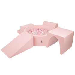KiddyMoon Aire De Jeux en Mousse avec Rond Piscine à Balles pour Enfants, rose:vert clair/jaune/turq/orange/r.foncé/violet, Piscine (200 Balles) + Version 3