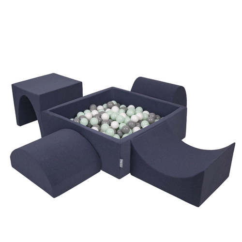 KiddyMoon Aire De Jeux en Mousse avec Rond Piscine à Balles pour Enfants, bleu foncé:perle/gris/transparent/babyblue/menthe, Piscine (100 Balles)+ Pente