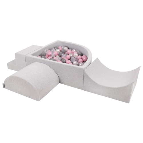 KiddyMoon Aire De Jeux en Mousse avec Quart Angulaire Piscine À Balles pour Bébé, gris clair: blanc/gris/menthe, Piscine (100 Balles) + Marches