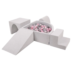 KiddyMoon Aire De Jeux en Mousse avec Quart Angulaire Piscine À Balles pour Bébé, gris clair: blanc/gris/rose poudré, Piscine (200 Balles) + Version 2
