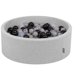 KiddyMoon Piscine à Balles ∅ 7Cm pour Bébé Rond Fabriqué En UE, gris foncé:blanc, 90x30cm/200 balles