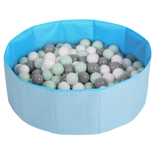 piscine à balles multicolores piscine pliable pour les enfant, bleu: blanc/gris/menthe, 100 balles