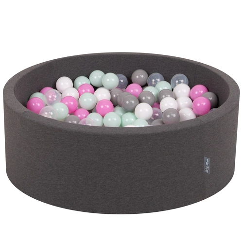 KiddyMoon Piscine à Balles ∅ 7Cm pour Bébé Rond Fabriqué En UE, gris foncé:blanc/gris/bleu/rose foncé/turq. clair, 90x30cm/200 balles