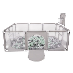 Parc Bébé avec Balles Plastiques Aire De Jeu Pliable Basket Football, gris:perle/gris/transparent/babyblue/menthe, 100 balles