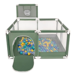 parc bébé avec balles plastiques aire de jeu pliable basket, vert, SANS Balles