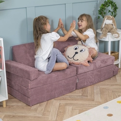 KiddyMoon Canapés Pliant pour Enfants Canapé-Lit Convertible Bébés-Canapé Lit Coucher Salle de Jeux Pliable Matelas au Sol Mini-Canapé Chaise-Lit, violet, Canapés avec 2 Oreillers