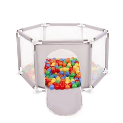 parc bébé hexagonal pliable avec balles plastiques, Gris:jaune/vert/bleu/rouge/orange, 100 balles