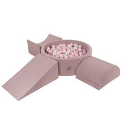 KiddyMoon Aire De Jeux en Mousse avec Rond Piscine à Balles pour Enfants, rose:perle/gris/transparent/rose poudré, Piscine (200 Balles) + Version 4
