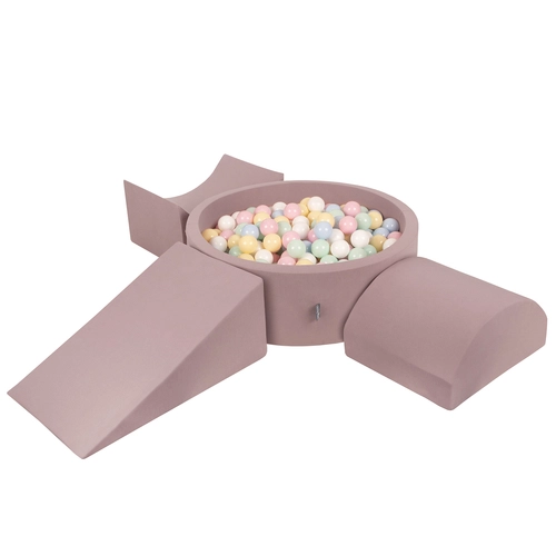 KiddyMoon Aire De Jeux en Mousse avec Rond Piscine à Balles pour Enfants, bruyère: brun/cuivre/beige pastel/saumon, Piscine (200 Balles) + Version 4
