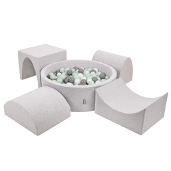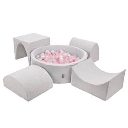 KiddyMoon Aire De Jeux en Mousse avec Rond Piscine à Balles pour Enfants, gris clair: rose poudré/perle/transparent, Piscine (200 Balles) + Version 1