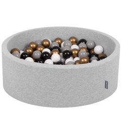 KiddyMoon Piscine à Balles ∅ 7Cm pour Bébé Rond Fabriqué En UE, gris clair:blanc/gris/noir/or, 90x30cm/200 balles