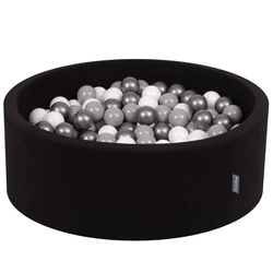 KiddyMoon Piscine à Balles ∅ 7Cm pour Bébé Rond Fabriqué En UE, noir: blanc/gris/argenté, 90x30cm/200 balles