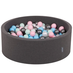 KiddyMoon Piscine à Balles ∅ 7Cm pour Bébé Rond Fabriqué En UE, gris foncé:perle/rose clair/babyblue/menthe/argent, 90x30cm/200 balles